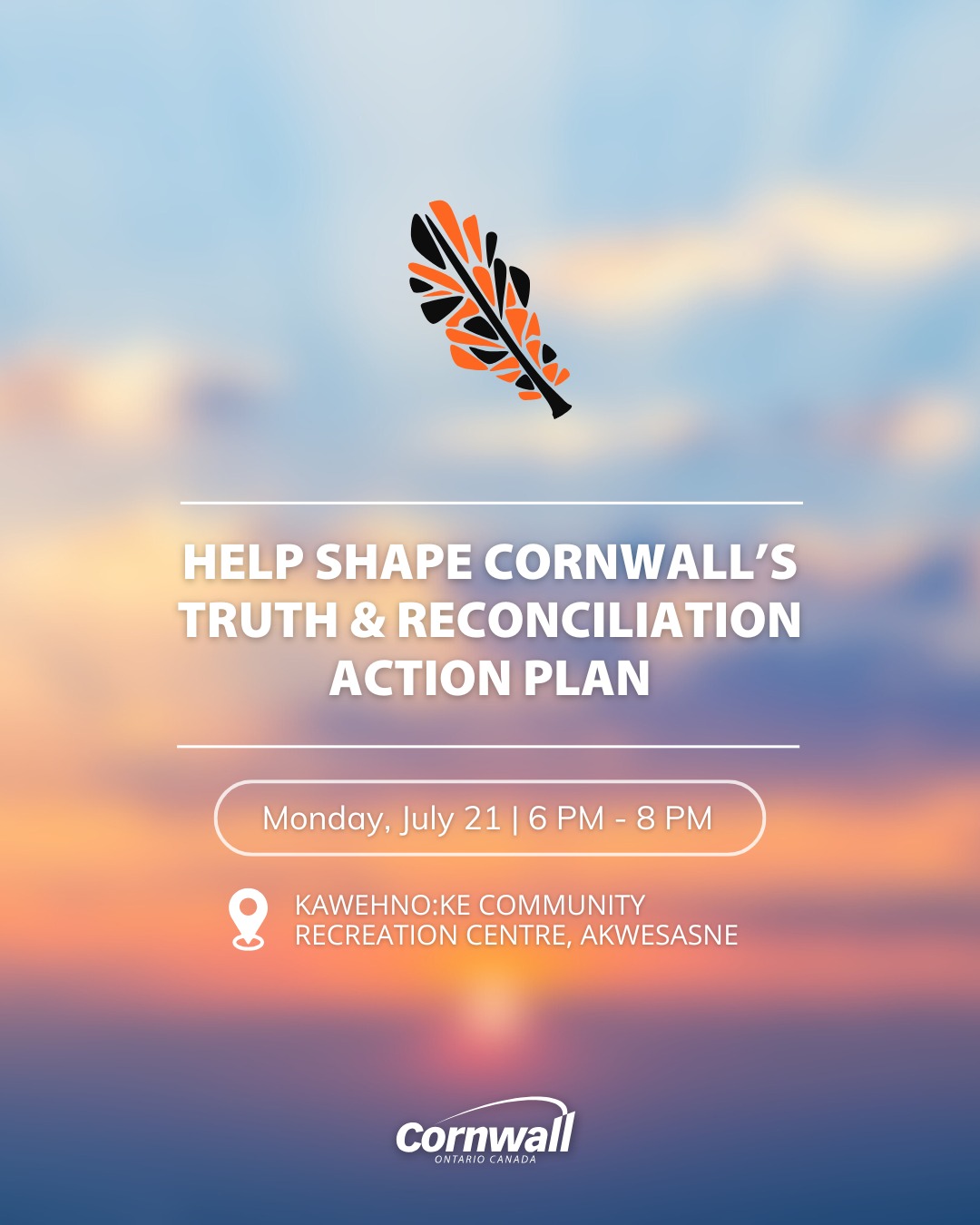 The City of Cornwall is pleased to announce a public engagement session on its Truth and Reconciliation Action Plan. This important event will take place on Wednesday, September 25, from 6:00 PM to 8:00 PM in Salon B at the Cornwall Civic Complex.